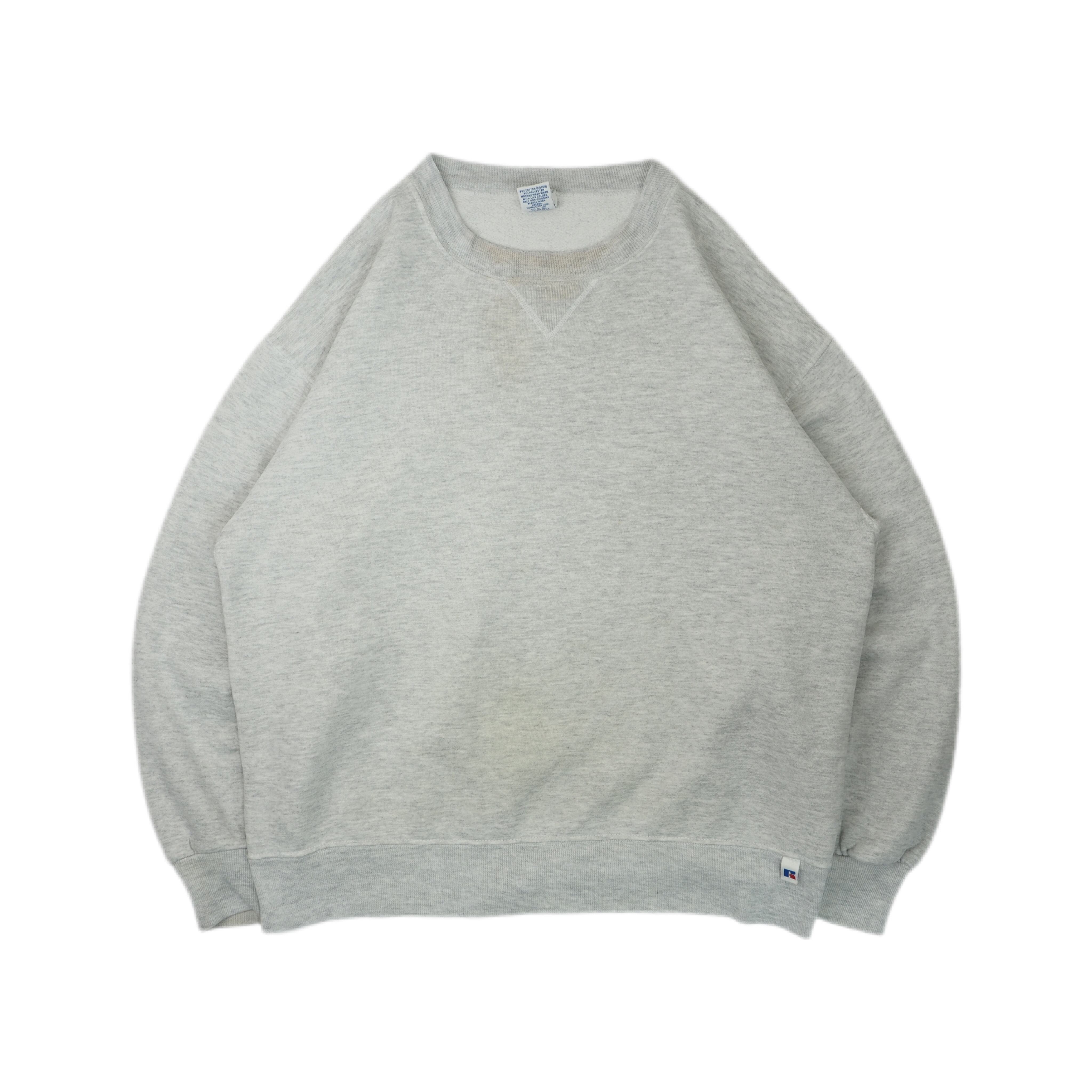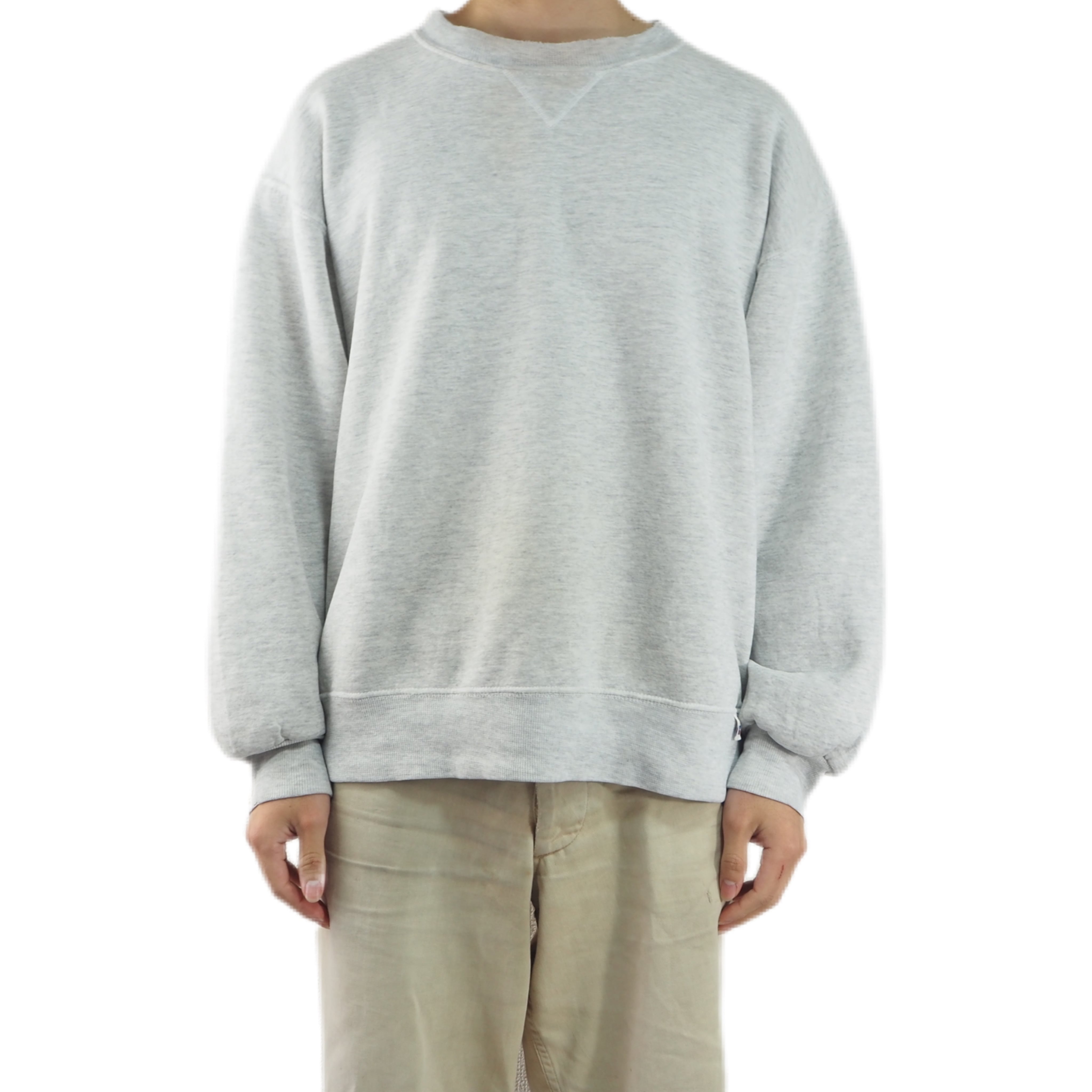 90年代頃のラッセルアスレチックのスウェットです。個人的最推しブランド、ラッセルアスレチック。カラーは霜降りがかったグレーで、シルエットはボックスシルエット。サイズ感は、普段Lサイズを着る方であれば、ジャストで着用でき、ラッセル本来の良いシルエットが出ると思います。ラッセルはそもそもが小さいサイズ感なので、普段Mサイズを着ている私が着用すると一般的なスウェットくらいのサイズ感になります。最近では第2のリバースウィーブと言ってもいいほど、値段が高騰化し始めているので早めに入手した方が良いアイテムです。