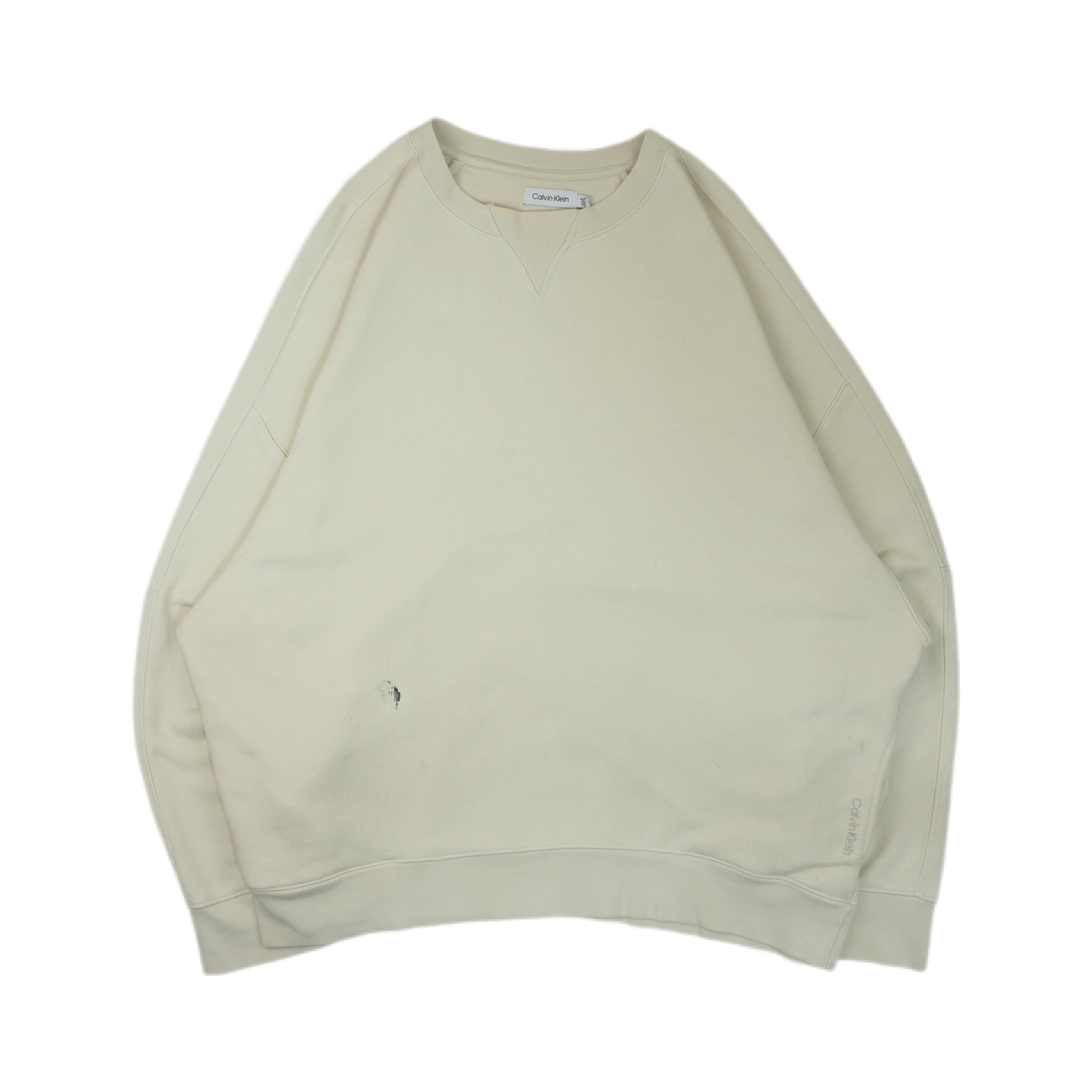 カルバンクラインのスウェットです。最近SNSでよく見かけるCalvin Kleinですが、下着だけじゃないですよ。Calvin Kleinにもちゃんと良いアイテムあります。前Vで、前面セットインスリーブ、背面ラグランスリーブとヴィンテージ感もありながら、やはりデザイナーズらしいディテールのスウェットです。スウエットには珍しいサイドポケットがあるのもポイント。何より素材が、明らかに良いものを使っているというのが分かる質感。サイズ感はかなり大きめで、表記はXLですが、実際の着用感は2XLから3XLほど。オーバーサイズでの着こなしはもちろん、ワンピース感覚でコーディネートに取り入れるのもおすすめです。