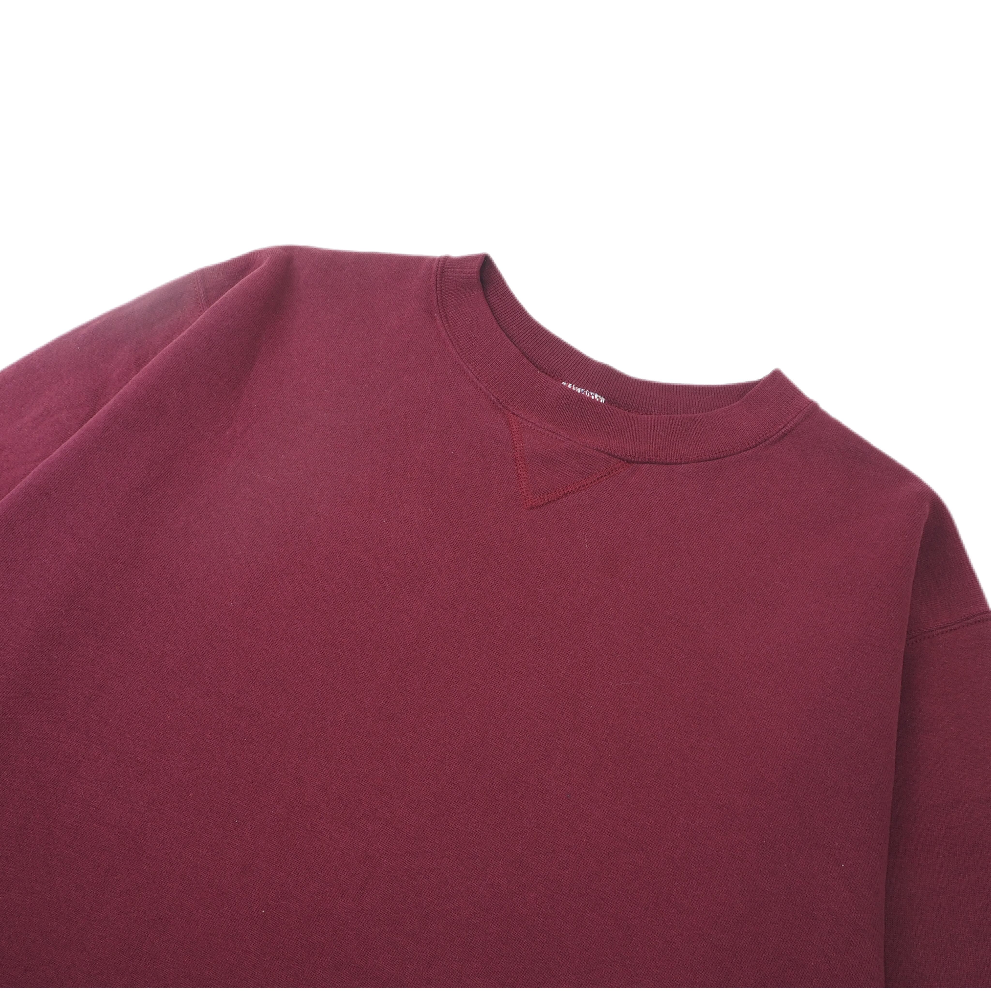 カラーは深みのある美しい臙脂(えんじ)。落ち着いた色味で幅広いスタイルに馴染みます。サイズ感は、普段Lサイズを着用する方ならジャストで着られるバランス。オーバーすぎず、すっきりとした印象で楽しめます。
